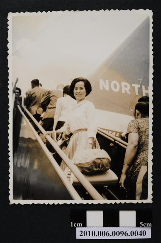 一女子於登機梯上之照片