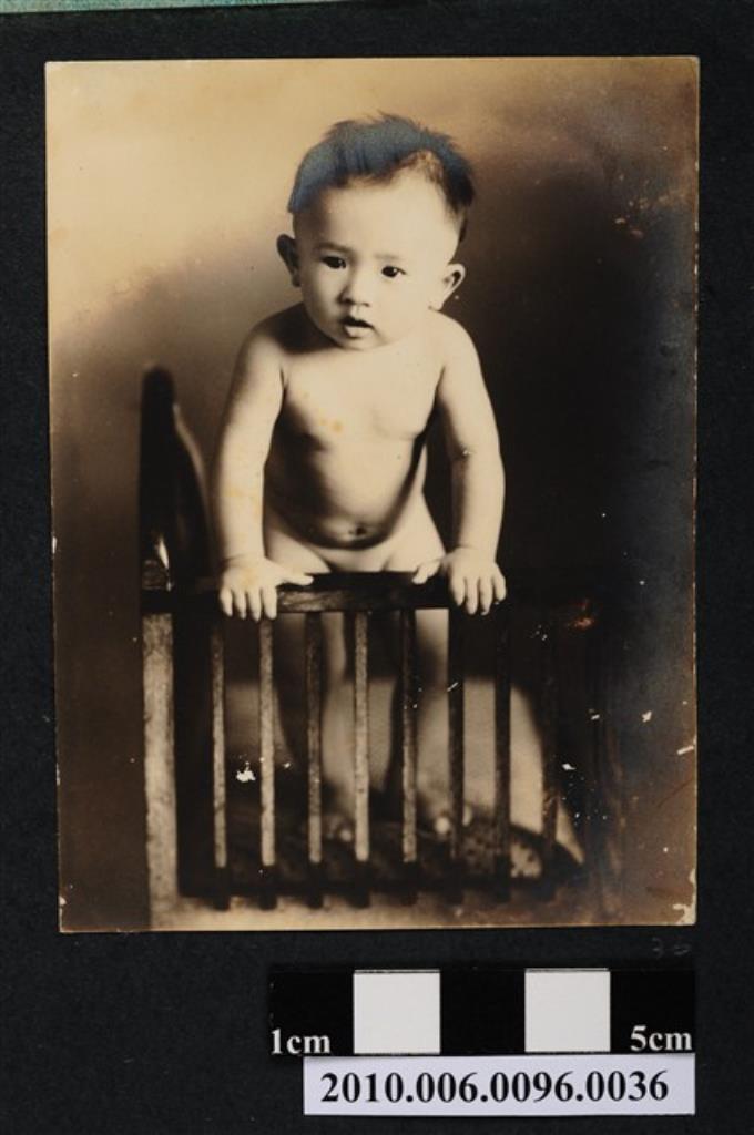 一嬰兒雙手支撐於嬰兒床邊護欄站立之照片