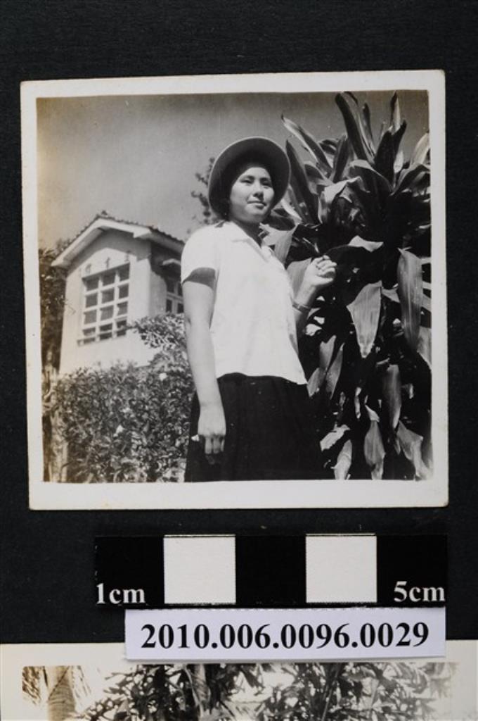 一女子站立於植栽前獨影之照片