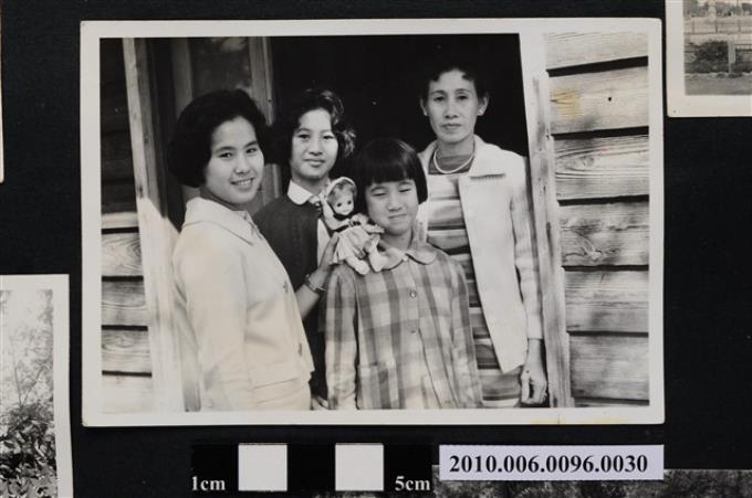 一婦人與三位女子站立於建物門口合影之照片