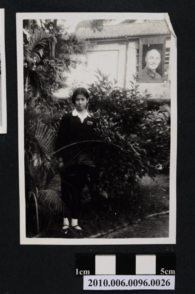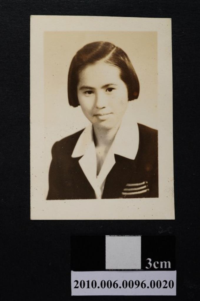 著大片立領服飾之女子正面半身照