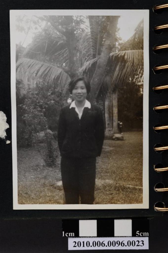 一女子站立於植栽前獨影之照片