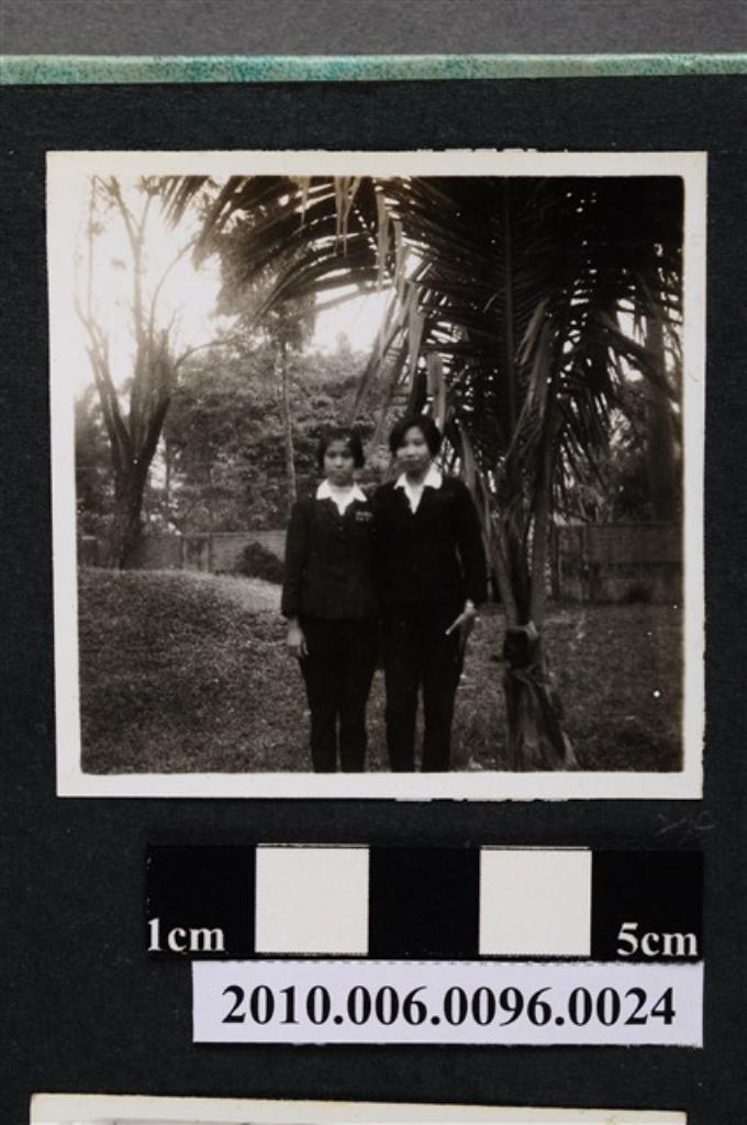 二位女子站立於植栽旁合影之照片