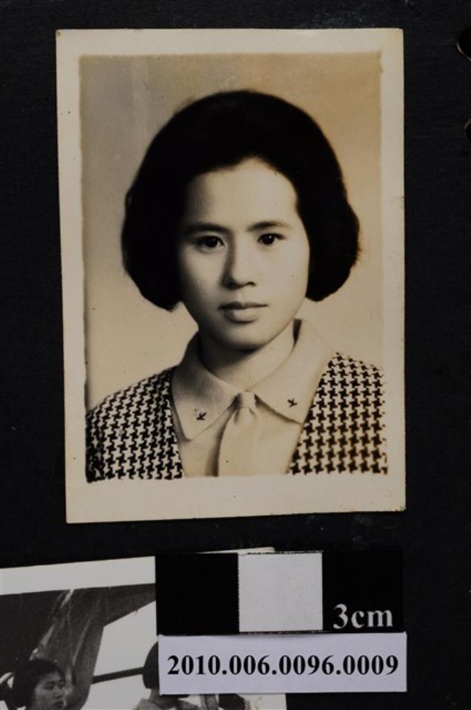 著有領服飾之女子正面半身照