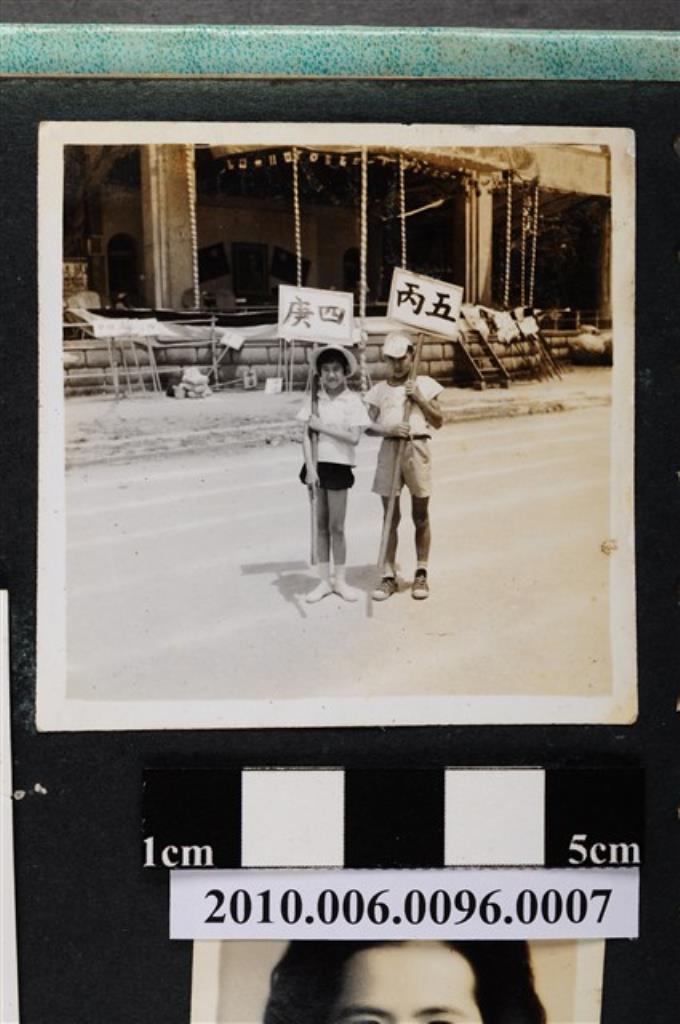 二位孩童手持立牌合影之照片