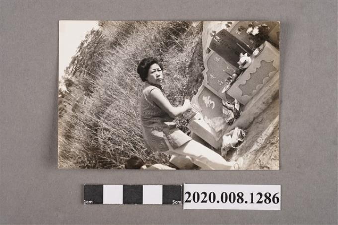 1名女子於墓前獨照