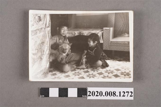2名小孩與狗同樂合照