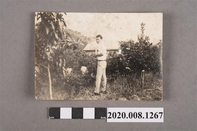 1名男子於果園獨照
