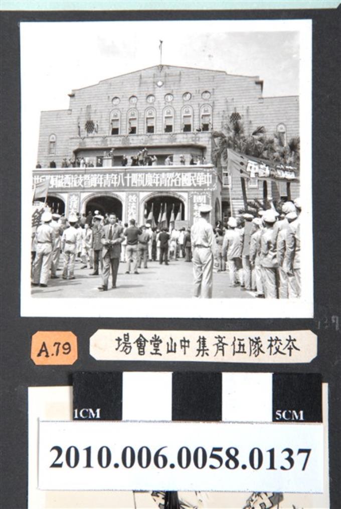 臺灣省立師範大學隊伍參加青年節遊行活動於中山堂留影