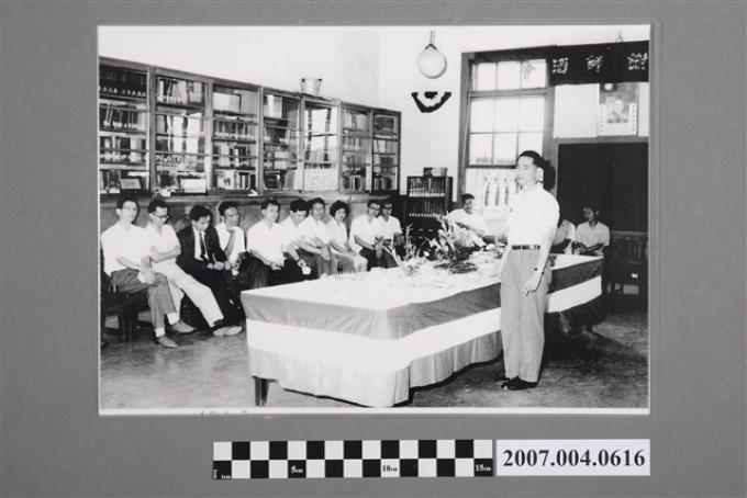 陳拱北與臺大教授於臺大公衛所圖書室合照