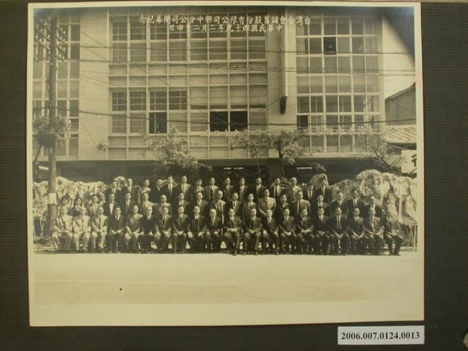 民國50年11月5日歡迎黃董事長蒞臨臺灣合會儲蓄公司臺中分公司新建辦公廳落成剪綵攝影留念