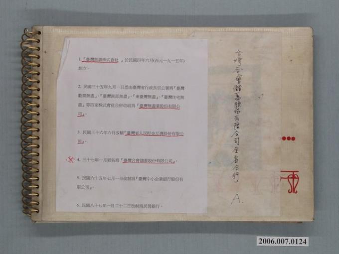 臺灣合會儲蓄股份有限公司全省分行相本