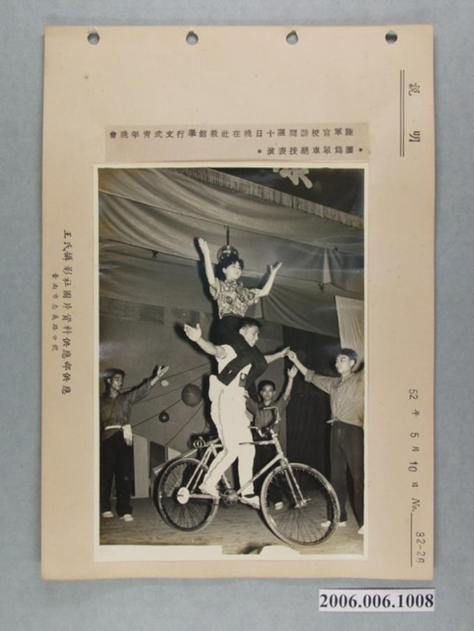 陸軍官校訪問團舉行文武青年晚會中單車絕技表演新聞照