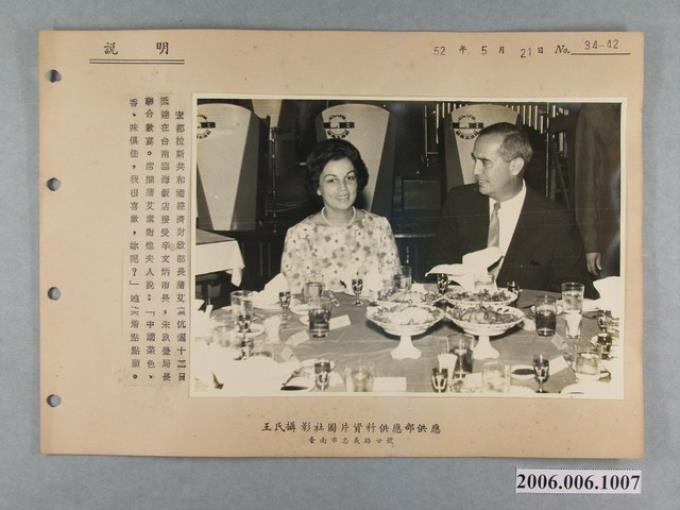 王氏攝影社攝〈宏都拉斯共和國經濟財政部長蒲艾素伉儷抵達臺南臨海飯店〉照片