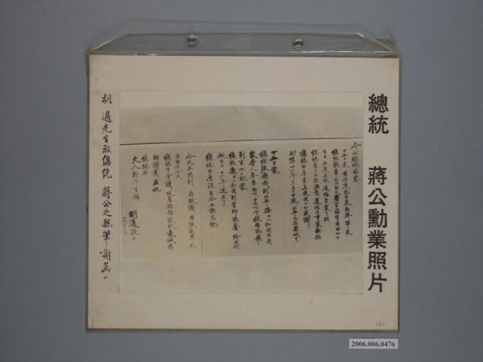 《蔣公勳業照片》〈胡適先生致總統蔣公之親筆謝函〉