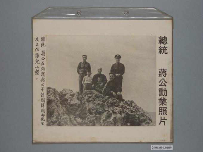 《蔣公勳業照片》〈總統蔣公在海濱與公子經國、緯國兩先生及三位孫兒小憩〉