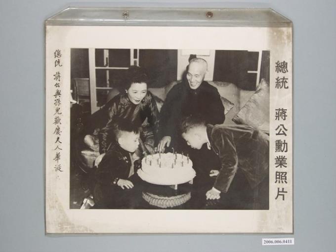 《蔣公勳業照片》〈總統蔣公與孫兒歡慶夫人華誕〉