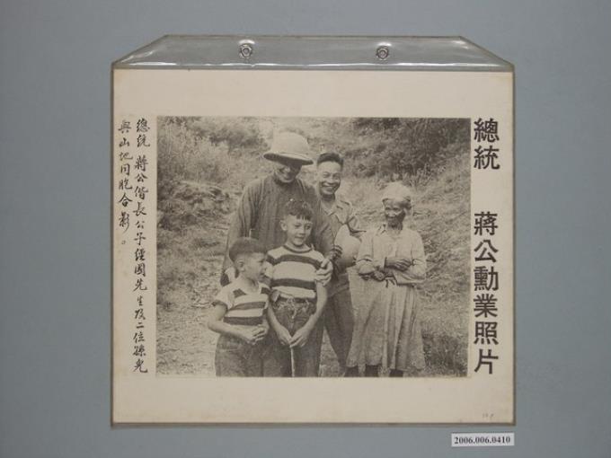 《蔣公勳業照片》〈總統蔣公偕長公子經國先生及二位孫兒與山地同胞合影〉
