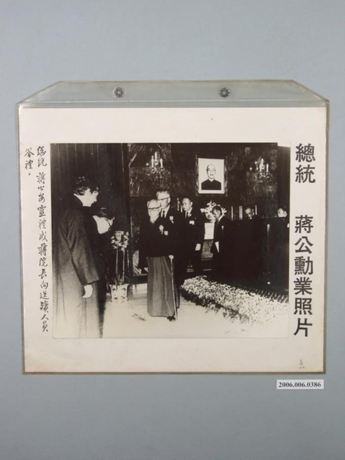 總統蔣公勳業照片《總統蔣公安靈棺四月十六日中午在慈湖陵寢隆重舉行蔣夫人牽家屬致祭》