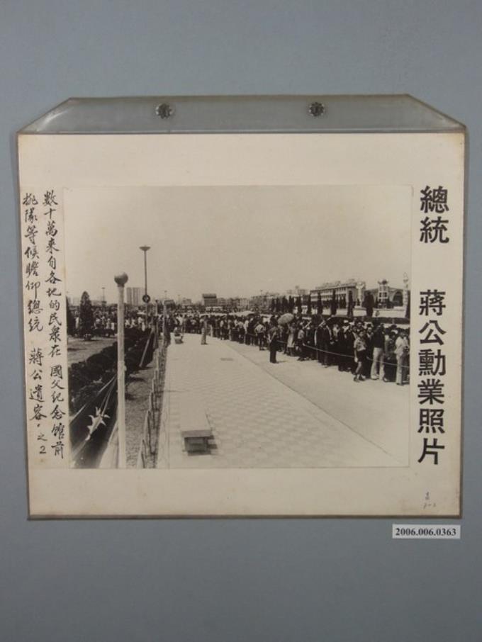 總統蔣公勳業照片《數十萬來自各地的民眾在國父紀念館前排隊等候瞻仰總統蔣公遺容》