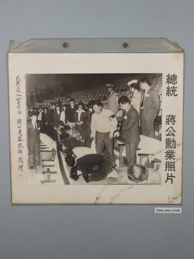 總統蔣公勳業照片《民眾進入靈堂向蔣公遺容跪拜敬禮》