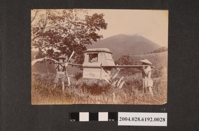 二名男子扛轎前進照