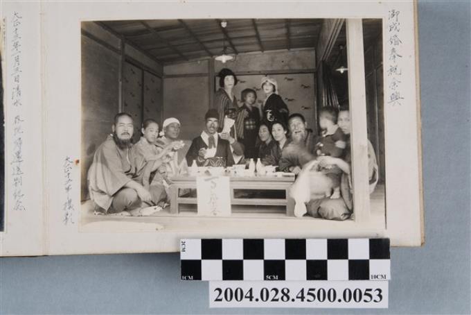 大正12年二名男子與二名女子於新化公學校校長宿舍庭園合照