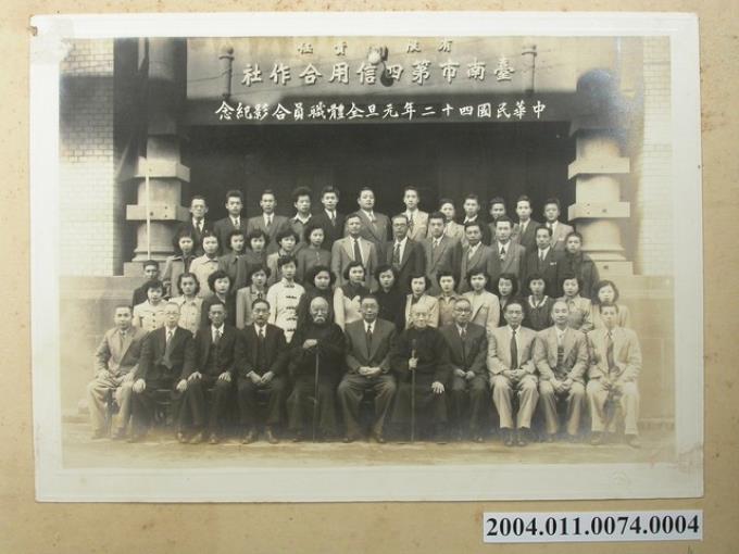 民國42年元旦王汝禎與臺南市第四信用合作社全體職員合照