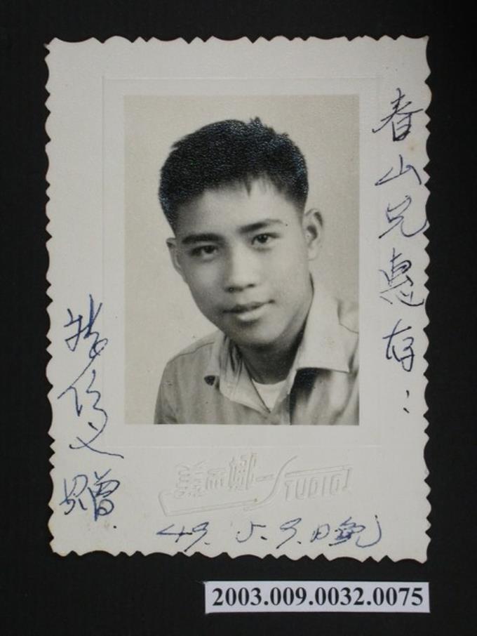 照片:春山兄惠存 張俊文贈(49.5.9晚)