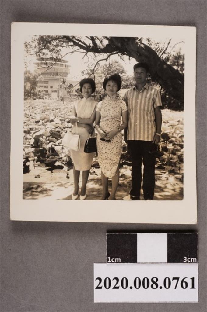 3名男女於荷花池前合照