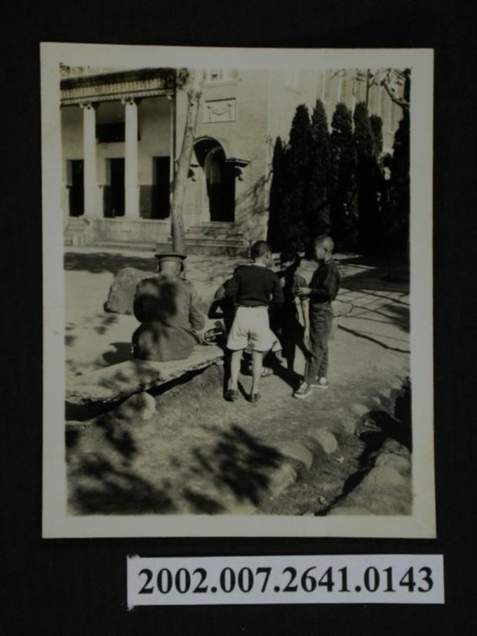 三名孩童於毘盧禪寺前玩耍