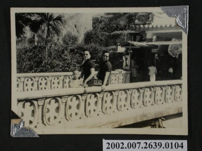 彭啟超夫人於龍形雕刻旁階梯合照