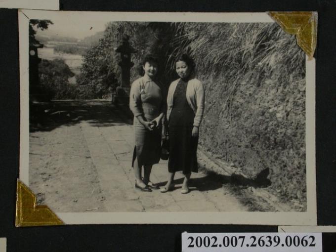 彭啟超夫人與1名女子於涼亭合照