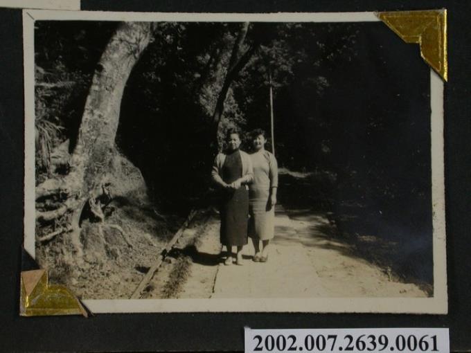 彭啟超夫人與1名女子行走於山林小徑