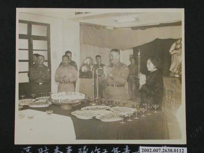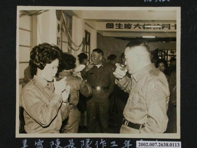 彭指揮官於十月份慶生會與女青年工作隊長陳雪美上尉敬酒