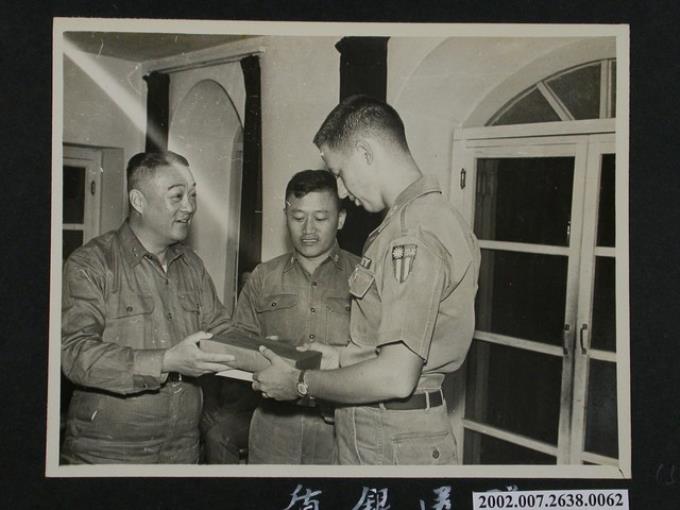 彭指揮官贈送銀盾予任期屆滿之顧問克勞哲中尉