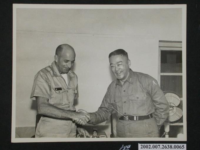 彭指揮官與來本區訪問之愛爾斯少校握手