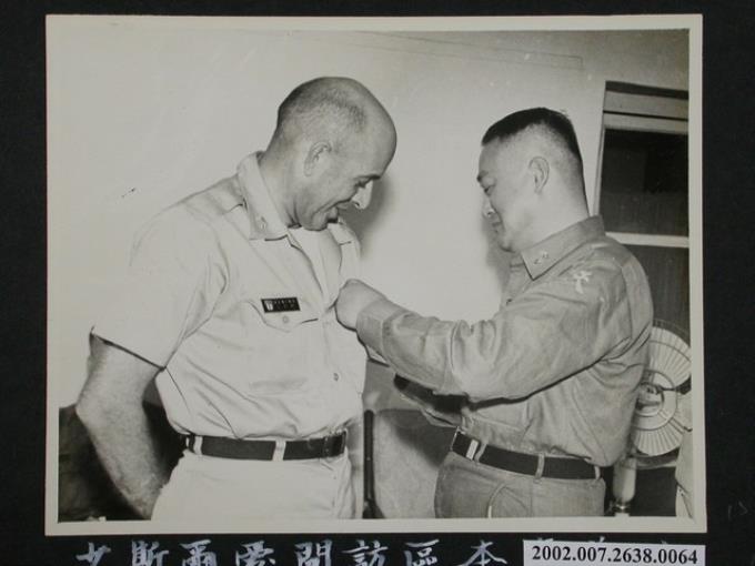彭指揮官為來本區訪問之愛爾斯少校佩掛紀念章