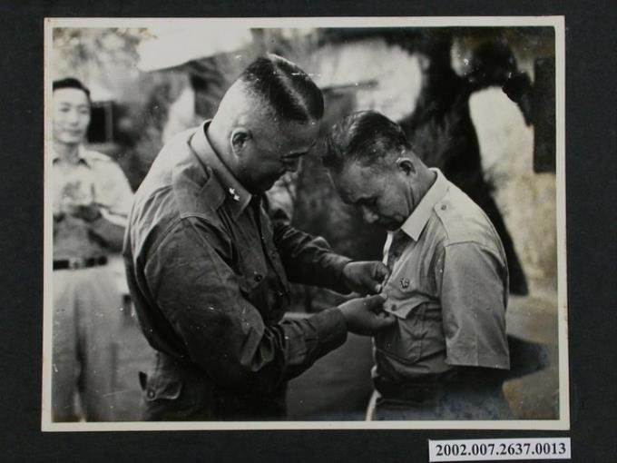 彭指揮官替實踐學社帥總教官佩戴紀念章