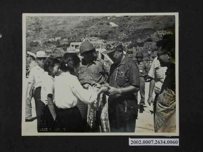 兒童代表敬送錦旗予軍事新聞研究會前線訪問團