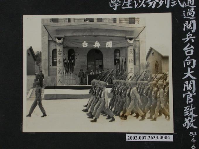 預備士官隊第一期畢業典禮之學生通過閱兵臺向大閱官致敬