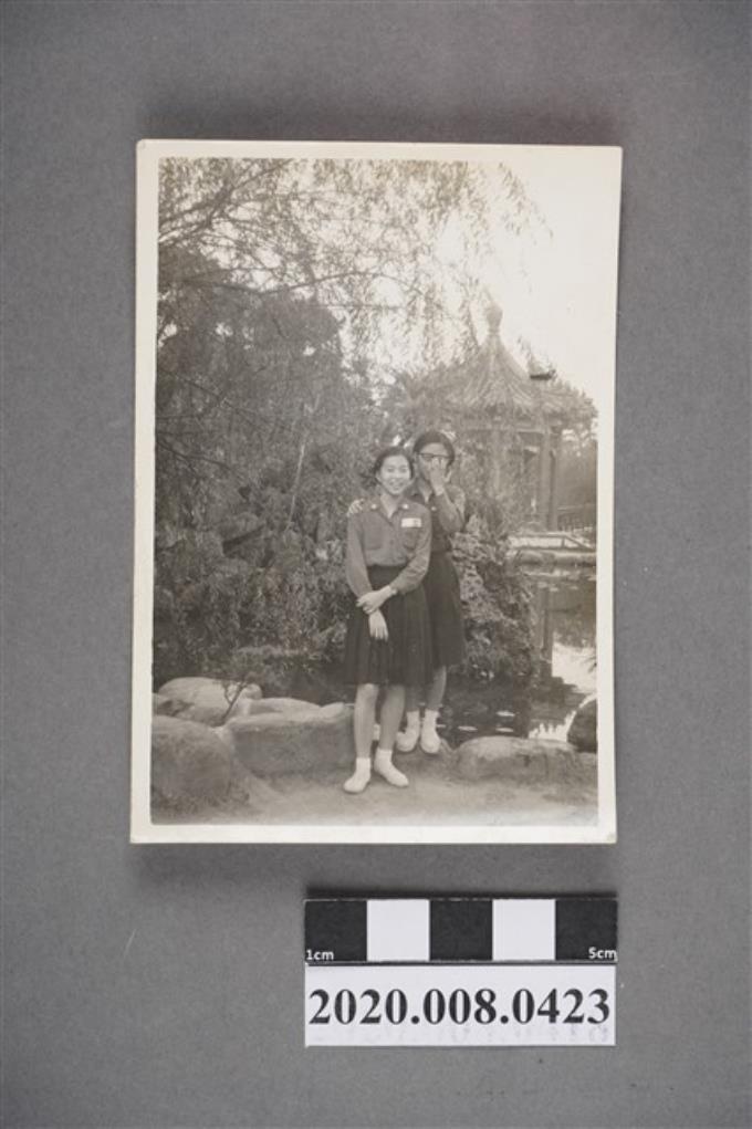 二女於台階上合照