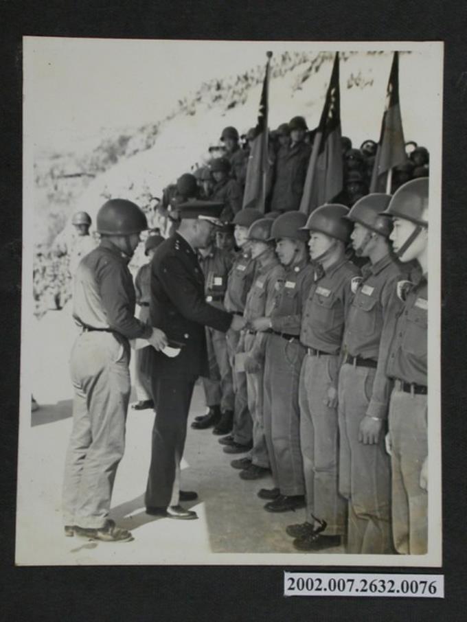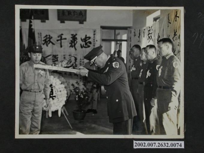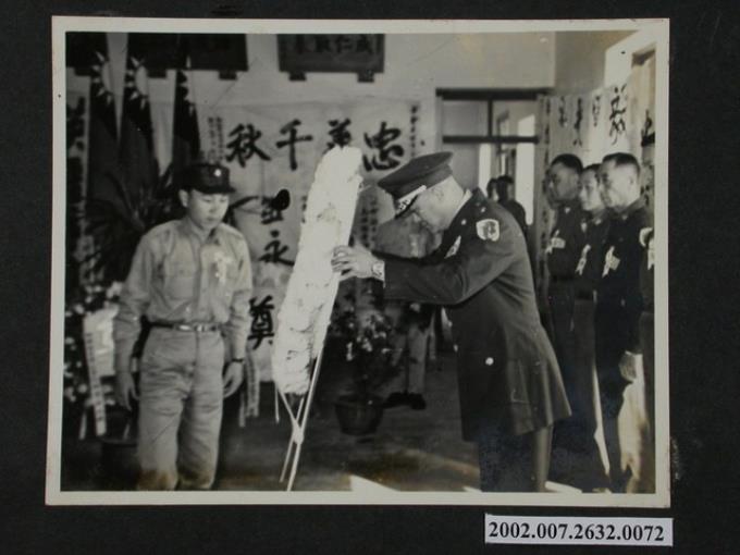 彭指揮官為國防部新聞局黃孝漢中校佩戴馬祖紀念章