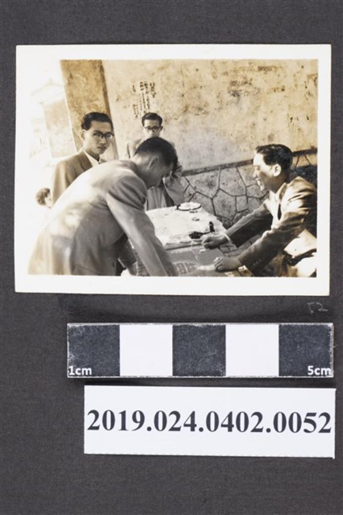新郎柯旗化與伴郎於婚禮簽到處