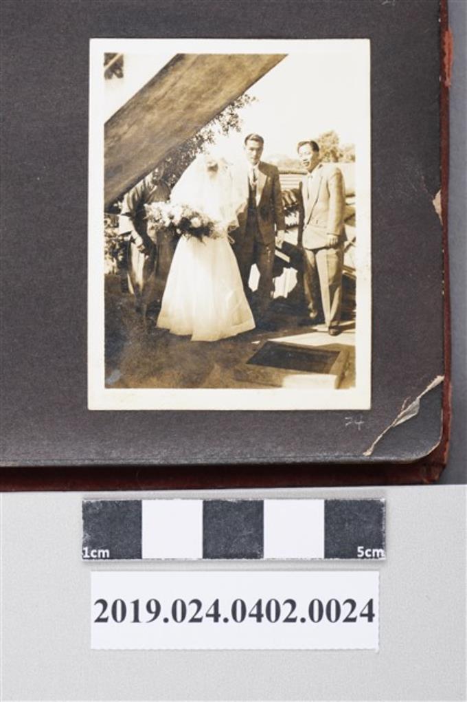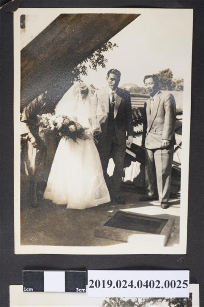 新郎柯旗化扶新娘蔡阿李步出禮車