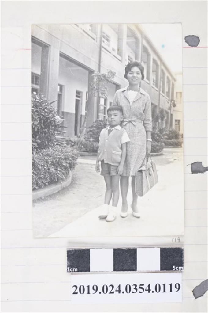 柯旗化次子柯志哲與柯蔡阿李於花圃前