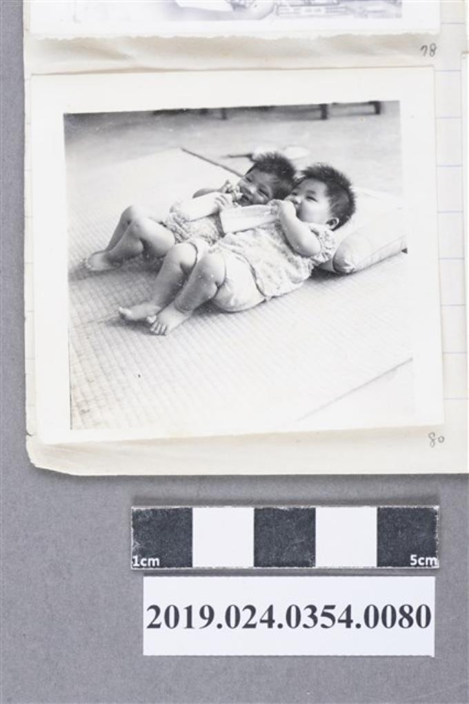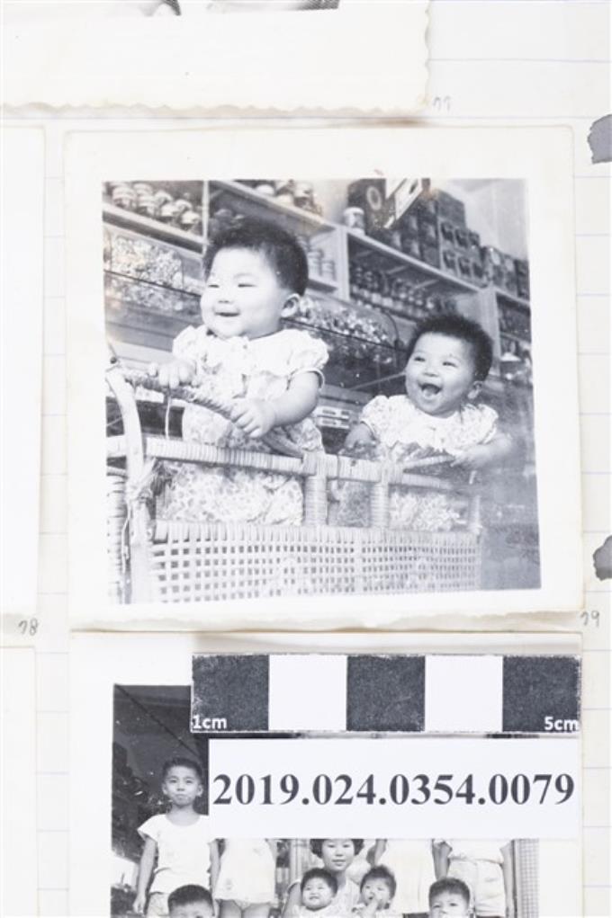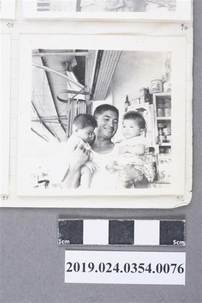 柯旗化四弟柯飛勝於左營老家抱著雙胞胎女兒