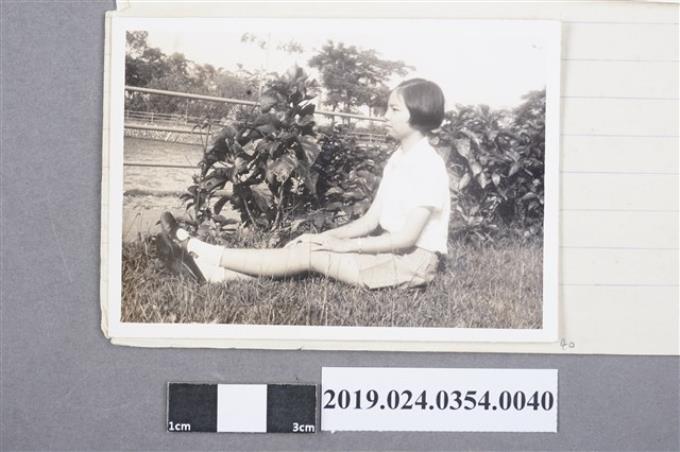 柯旗化長女柯潔芳坐在草地照片