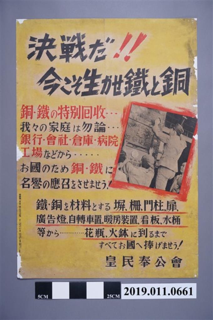 皇民奉公會決戰!!銅、鐵的特別回收」海報