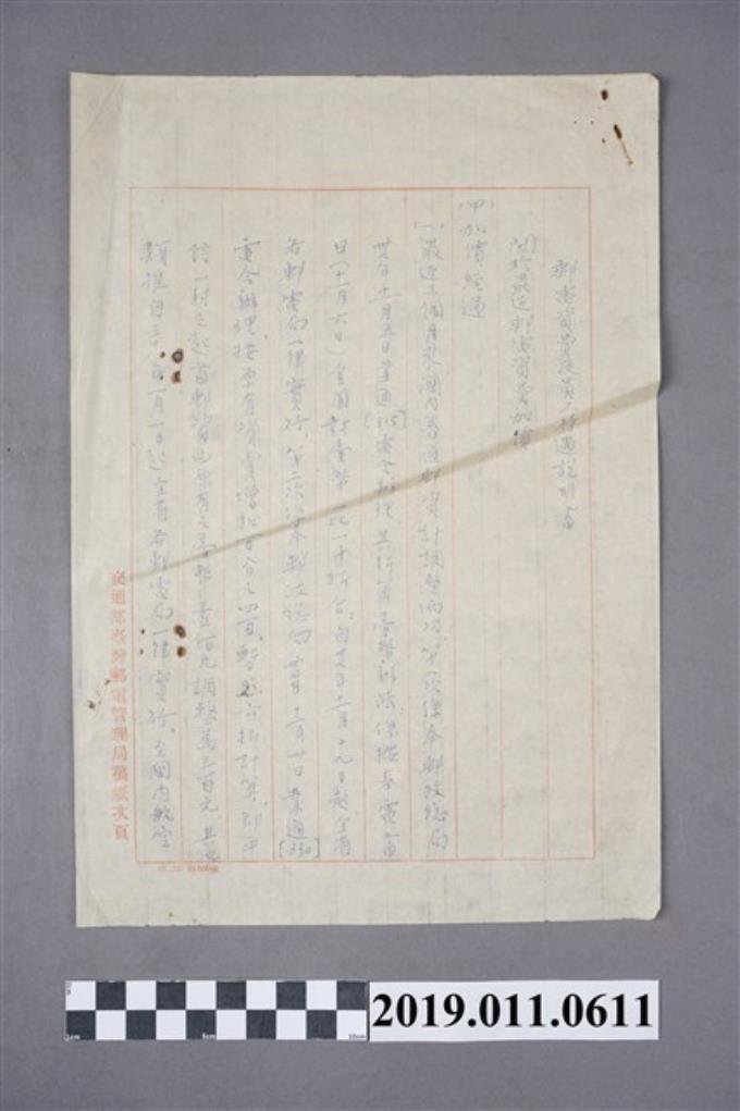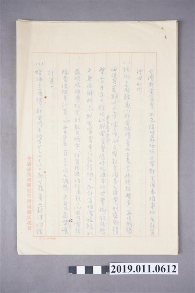 台灣郵電管理局為文解釋郵電費資價的原因文件